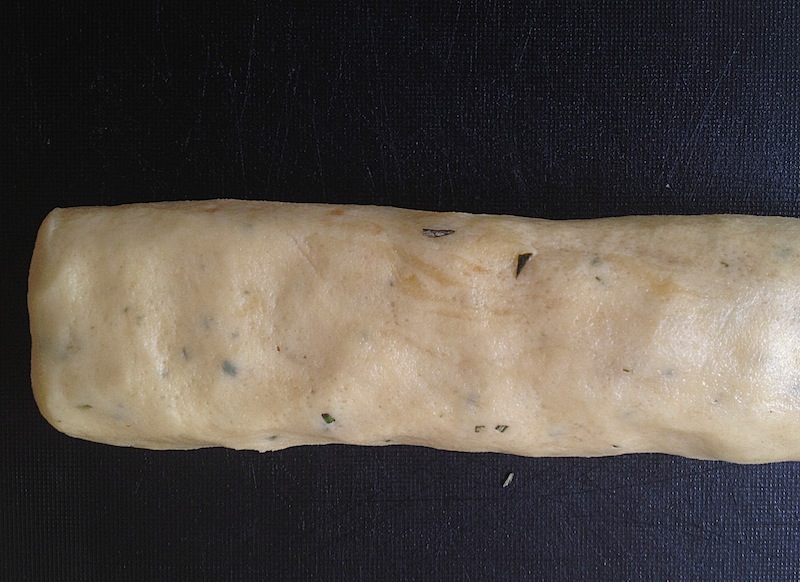 Optie 1: Meng de kruiden door het deeg, maak er een rol van, verpak in plastic folie en laat 15 minuten rusten in de koelkast. Vervolg na optie 2 zanddeeg recept.