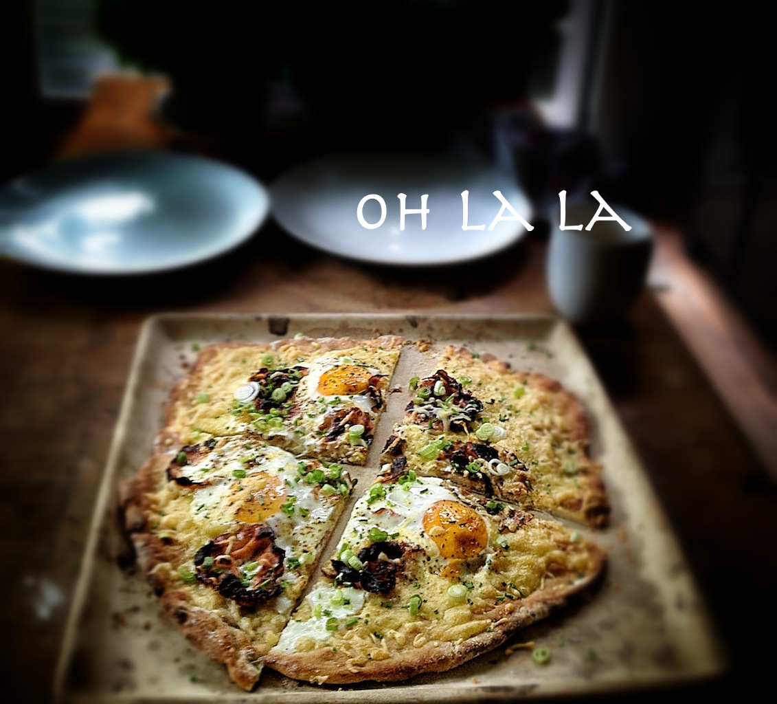 Dit is geen alledaags ontbijt, maar super lekker voor het weekend. Na een avondje stappen of op een witte winterse zondagmorgen heb je een fantastisch ontbijt dat je zo weer op de been helpt. Maak het pizza deeg van te voren en leg het in de vriezer. Haal het een avond ervoor uit de vriezer, als je de volgende dag de pizza wilt maken. Op deze manier ben je zo klaar, want anders moet je wel heel vroeg opstaan om het deeg te maken en dat is niet de bedoeling van het weekend. Voor de topping gebruik je ingrediënten die je lekker vindt. Zo simpel is het. A Breakfast Delight!♥