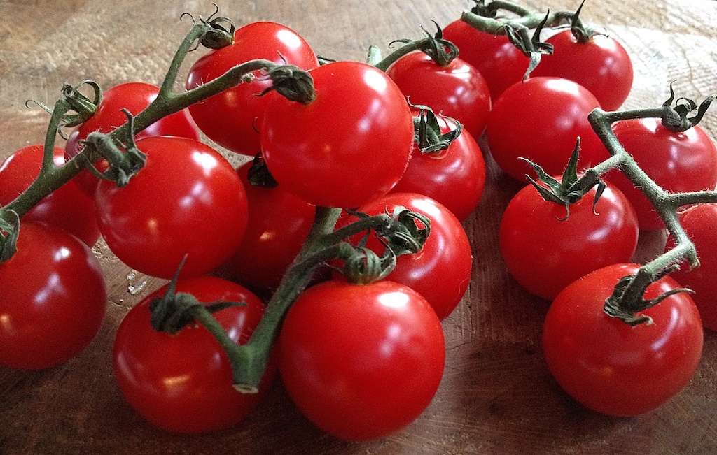 paar takjes cherry tomaatjes, gewassen en afgedroogd