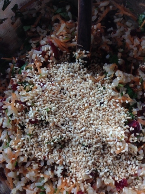 2. Snij en/of hak alle ingrediënten. Meng deze met de bulgur. Tot zover kun je dit van-te-voren voorbereiden, mits je de vulling in de koelkast bewaard.