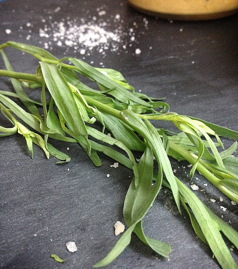 1 takje verse dragon, de blaadje van takje gerist (of 1 tl gedroogde dragon)